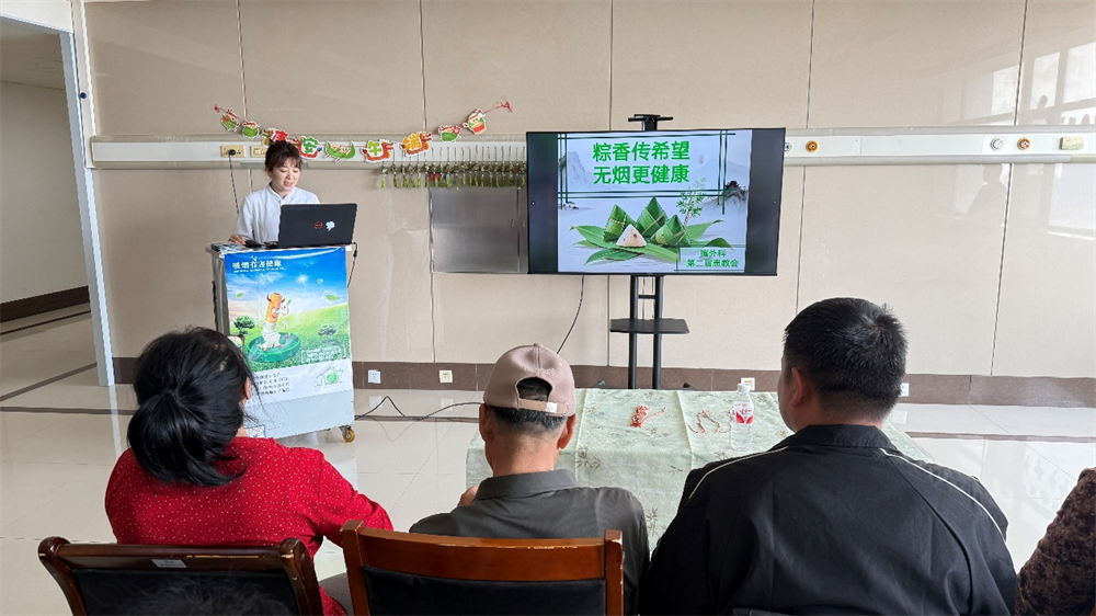 5月31日是第38个“世界无烟日”,恰逢中国传统节日“端午节”,为倡导文明新风,弘扬无烟健康过节文化,引导职工群众践行文明健康绿色环保的生活方式,减少烟草危害,创造良好的生产生活环境。5月27日,胸部肿瘤外科将禁烟控烟宣传与中国传统文化结合起来,开展“烟‘勿’弥漫,粽‘享’健康”主题肿瘤防治宣传活动,为患者与家属送上节日的祝福与科学的健康守护。