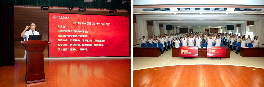 随后,在院长王茂楠的带领下,全体参会人员起立诵读《中国医师宣言》,展现了医者对职业的庄严承诺和坚定信念。