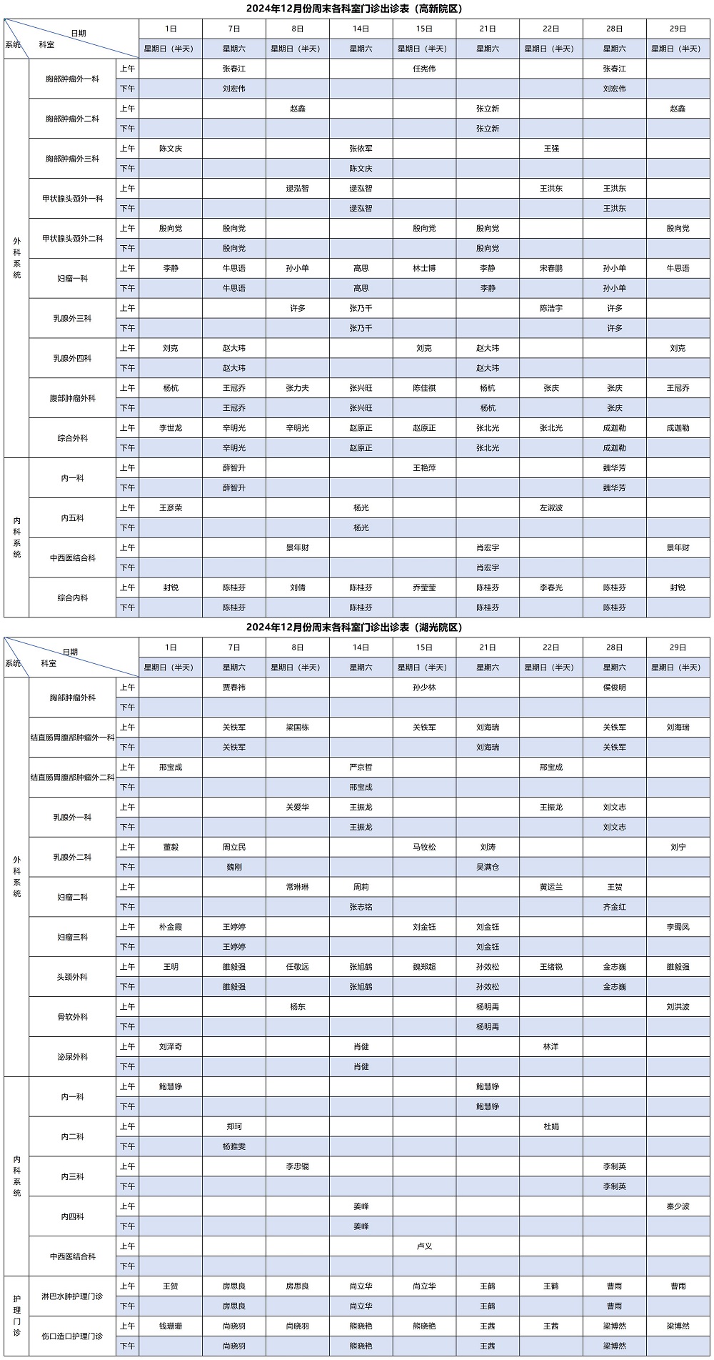 当前位置:首页 > 就医指南 > 专家出诊时间 吉林省肿瘤医院2024年12月份周末各科室门诊出诊表(仅供参考 以实际出诊情况为准) 来源: 时间:2024-12-06 浏览: 次 2024年12月份周末各科室门诊出诊表来源:吉林省肿瘤医院门诊办公室初审人:陈靖石复审人:贾春祎终审人:梁长林