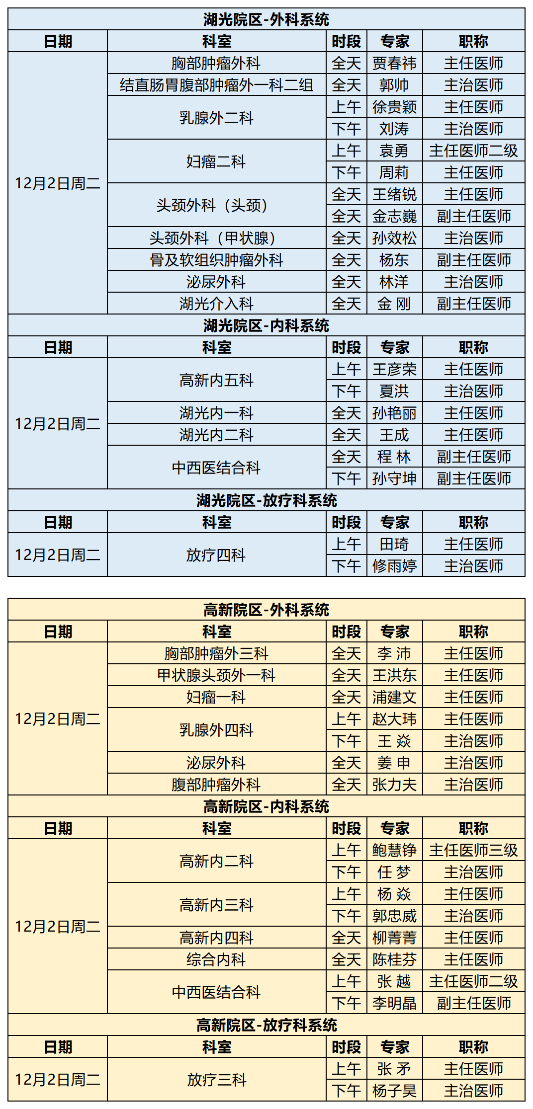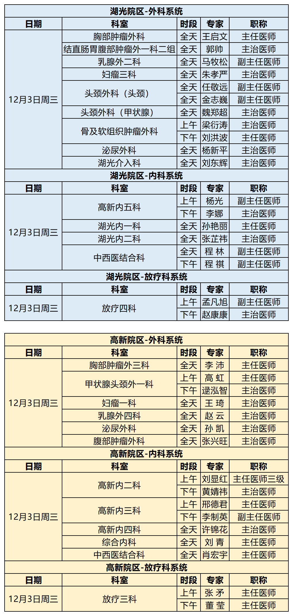 吉林省肿瘤医院12月1日-12月7日专家出诊信息 (仅供参考 以实际出诊情况为准)