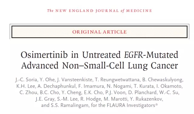 2017年11月18日国际顶级肿瘤学杂志《新英格兰杂志》在线发表了我院程颖教授团队参与的FLAURA研究,该研究是全球第一个第三代TKI与一代TKI头对头比较一线治疗EGFR敏感突变晚期NSCLC的Ⅲ期临床研究,共纳入来自30个国家的556名既往未接受过任何治疗的局部晚期或转移性EGFR突变阳性的NSCLC患者,其中我院入组29例患者,入组数全国第一。研究的主要终点为PFS,与标准治疗相比,奥希替尼治疗使初治晚期EGFR突变NSCLC患者的PFS达到18.9个月,而对照组只有10.2个月,疾病进展或死亡风险下降54%,即使存在中枢神经系统转移的患者PFS也达15.2个月。基于FLAURA研究结果,授予奥希替尼用于EGFR突变阳性晚期NSCLC患者一线治疗的“突破性疗法”称号,NCCN指南也进行了更新,推荐EGFR突变阳性的局部晚期或转移性非小细胞肺癌的患者一线使用奥希替尼治疗。FLAURA研究正在改变晚期EGFR突变阳性NSCLC患者的治疗模式。