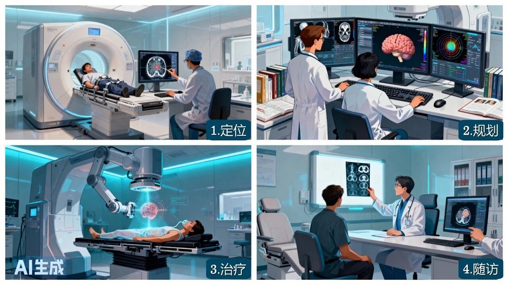 1.定位:患者需进行专门的CT或CT/MRI融合扫描,精确勾画肿瘤靶区。