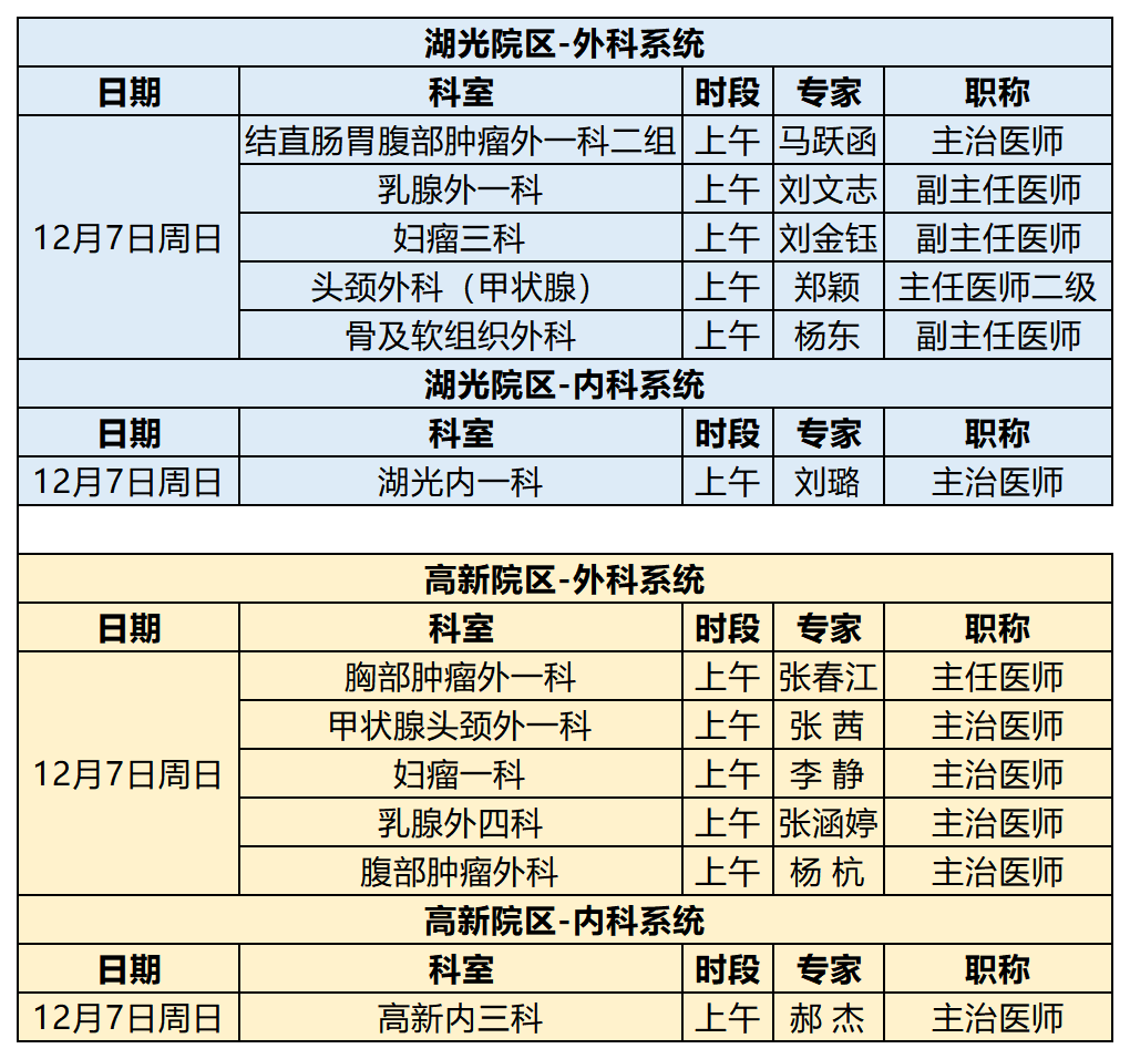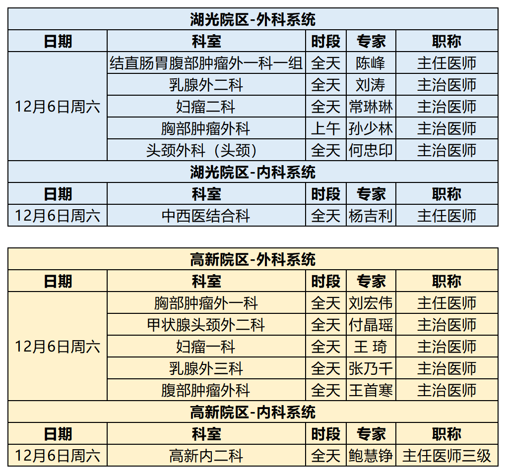 吉林省肿瘤医院12月1日-12月7日专家出诊信息 (仅供参考 以实际出诊情况为准)