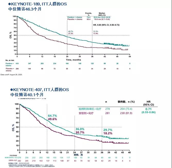 图 4 KEYNOTE-189 和 KEYNOTE-407 的三年 OS 数据