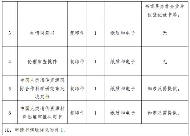 十二、行政许可证件 中国人类遗传资源材料出境审批决定书(样式见附件 2)。