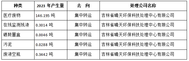 2023年吉林省肿瘤医院高新院区危险废物转运情况表