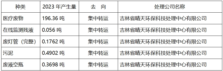 2023年吉林省肿瘤医院(湖光院区)危险废物转运情况表