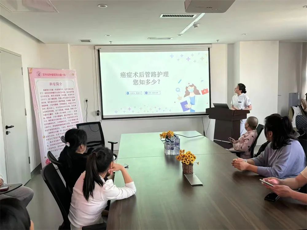 护士徐思宇为患者讲解了肿瘤患者术后的护理,帮助患者们缓解焦虑、恐惧等负面情绪,增强护理知识的认知。