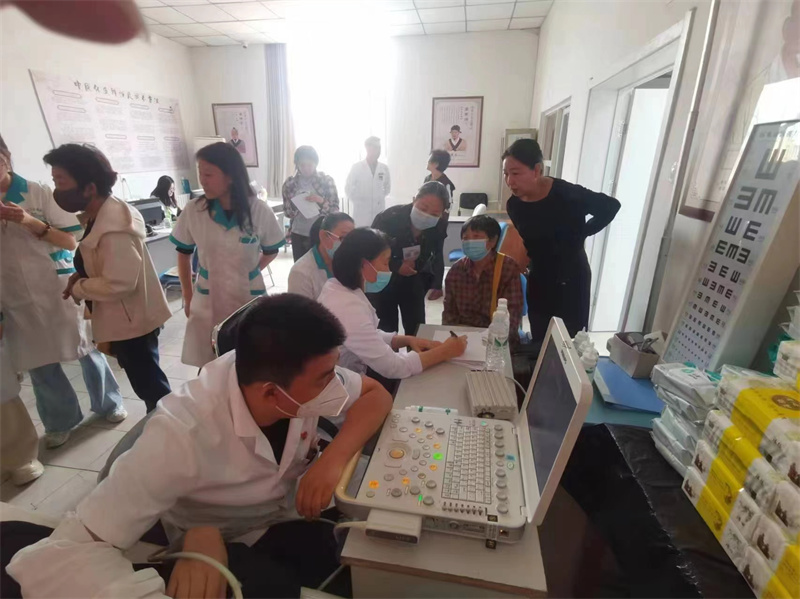 科普讲座结束后,进行了甲状腺彩超检查和免费义诊。五天共为附近居民群众、工厂职工近400余人进行了检查。为现场前来咨询的群众免费解读检查报告,并针对他们日常关心的甲状腺疾病的诊疗、预后转归以及围手术期等方面内容,做了耐心解答,提高了广大群众对甲状腺疾病的认识和防治意识,帮助其做到对甲状腺疾病的早预防、早筛查、早诊断、早治疗,深受现场参与群众的一致好评。