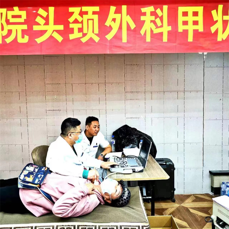 活动由头颈外科(甲状腺组)主任医师郑颖带队,主治医师王明、孙效松、雒毅强,高新院区超声科主任张箭、主治医师郑鹏远、曲赫明以及头颈外科护士长何海航带领的护理团队共同组成医护团队。