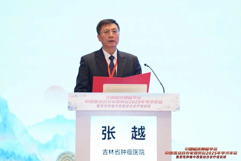 开幕式上,张越教授立足全球肿瘤诊疗视野发表致辞,深刻阐释了中西医结合“理念融合与临床创新”的核心内涵,分享了吉林省肿瘤医院中西医协同治疗恶性肿瘤的实践成果,为会议锚定发展方向,获全场专家高度认同;会议尾声,他作总结梳理形成三大核心共识,即肯定中西医结合在免疫相关不良反应、肿瘤并发症管理中的独特价值,明确临床标准化、证据体系构建是学科发展核心任务,提出以“中国智慧”推动中西医结合诊疗国际化输出,同时介绍学会下一步将联合全国顶尖机构开展多中心临床研究、撰写规范化诊疗共识,推动学科高质量发展。