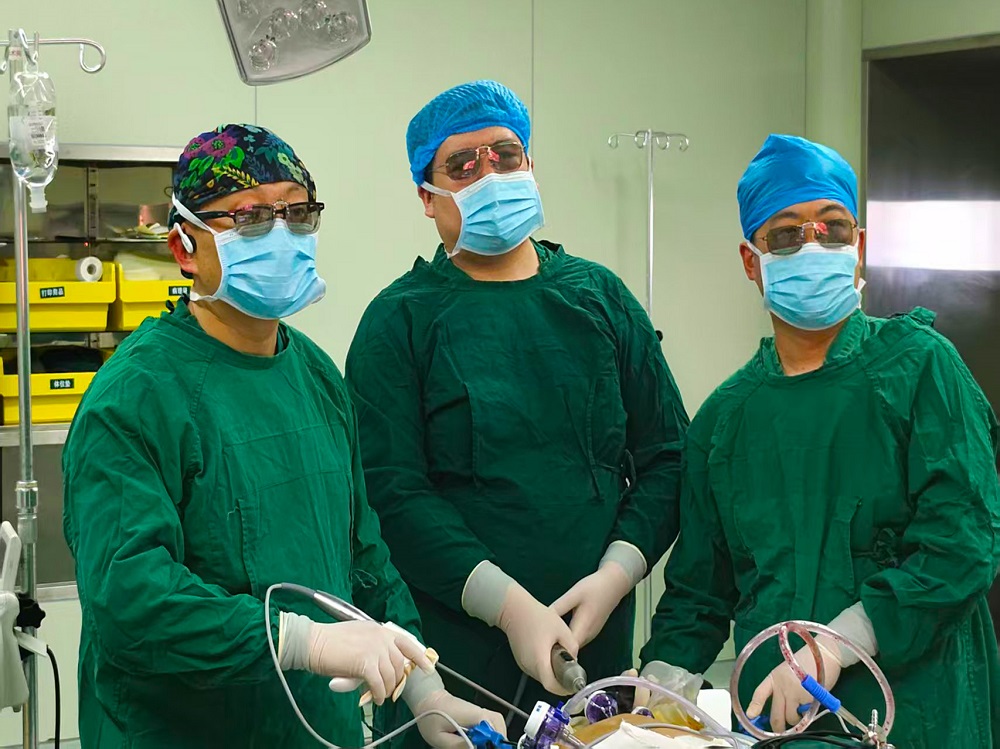 考虑到患者为晚期肿瘤合并多处转移,身体基础条件较弱,单纯手术风险过高,外科团队随即邀请湖光介入科专家联合制定方案。12月30日,介入科团队为患者成功实施肠梗阻导管留置及结肠支架置入术,术后患者梗阻症状快速缓解,成功化解急症风险,为后续根治性手术创造了有利条件。