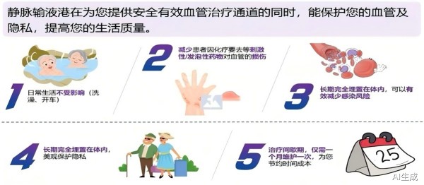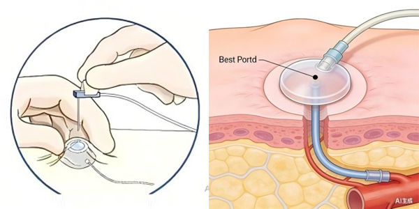 传统的静脉穿刺方式不仅给患者带来反复的痛苦,还容易引发静脉炎、穿刺部位感染等并发症。输液港作为一种长期、安全、便捷的静脉输液通路,其优势十分显著。它可完全植入皮下,不影响患者的日常活动和外观,能有效减少反复静脉穿刺的痛苦,降低静脉炎、感染等并发症的发生率:使用寿命长,维护方便,一次置入可使用数年,尤其适合需要长期输液、化疗、营养支持等治疗的患者。