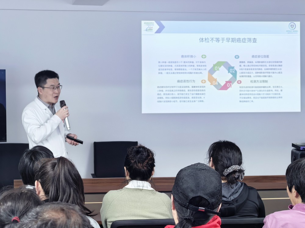健康科普讲座上,杨长良副主任以《肿瘤体检与健康管理》为主题,结合临床数据与典型案例,系统讲解我国癌症发病趋势、主要致癌危险因素及科学预防策略。讲座重点区分普通体检与肿瘤专项体检的差异,阐明常规体检在早期微小肿瘤、隐匿部位肿瘤筛查中的局限性,强调规范防癌体检是早期发现癌症的关键手段。杨长良副主任用通俗易懂的语言,传递早期癌症可防可治的科学理念,帮助居民破除“谈癌色变”的认知误区,树立癌症慢病化管理的正确观念。