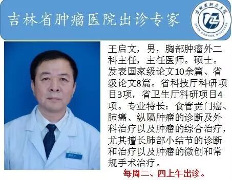 12月5日吉林省肿瘤医院肺部结节门诊及小细胞肺癌门诊出诊专家