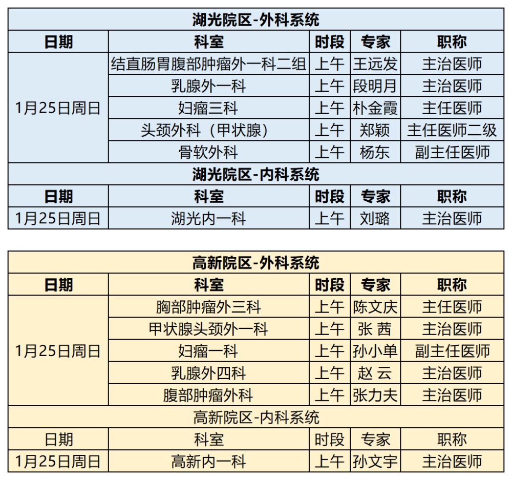 吉林省肿瘤医院2026年1月19日-1月25日专家出诊信息 (仅供参考 以实际出诊情况为准)